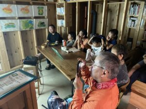 イベント以外に、小学校でもバナナのお話をする機会をいただきました。1カ所目の那智勝浦町立色川小学校では、1年生から4年生の10名ほどのお子さんと先生にお話をしました。さらに、今年4月に開校したばかりの探究型グローカル小学校「うつほの杜学園小学校」(和歌山県田辺市)も訪問。地域に開かれた放課後の授業であるアフタースクールで、1年生から3年生のお子さんと先生、保護者、近所の方に向けてお話しました。こちらの学校は、今年夏のサマースクールで規格外バランゴンバナナを扱った授業をしてくださり、そのご縁で訪問させていただきました。両校とも、バナナクイズをしたり、規格外バナナの活用法のアイディアを出してもらったり、子どもたちと活発なやり取りをしながら、バランゴンバナナがどのように日本に届くのか、なぜ規格外となってしまうのかなどを説明しました。子どもたちからは、バナナの皮を使ってバッグを作る、動物に配ってあげるなど面白いアイディアが出ました。