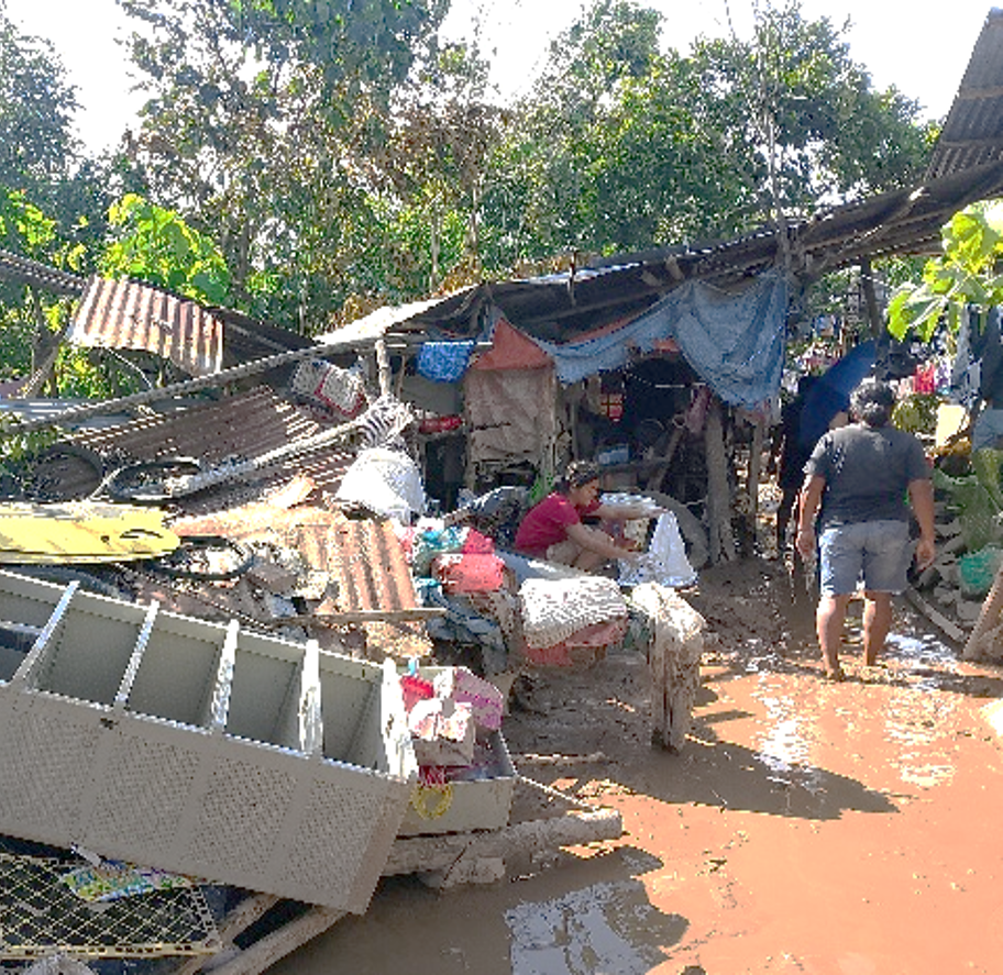サトウキビの生産地があるネグロス島のマリアセシリアでは、鉄砲水が地域を襲い、丸太やごみの塊が住居数軒とサトウキビ畑を襲いました。地域の人は屋根の上に避難したり、トラクターを使って3往復し、子どもたちや老人を安全な場所へ避難させました。