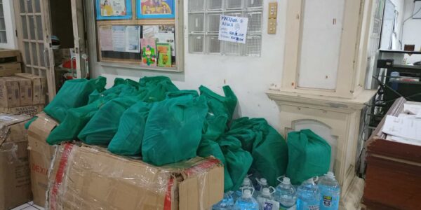 今回の緊急支援では、被災者に対して、食料や生活必需品をパックにした物資を配布しました(飲料水、お米5kg、缶詰、洗剤、石鹸、懐中電灯、タオル、ブランケット)。