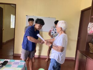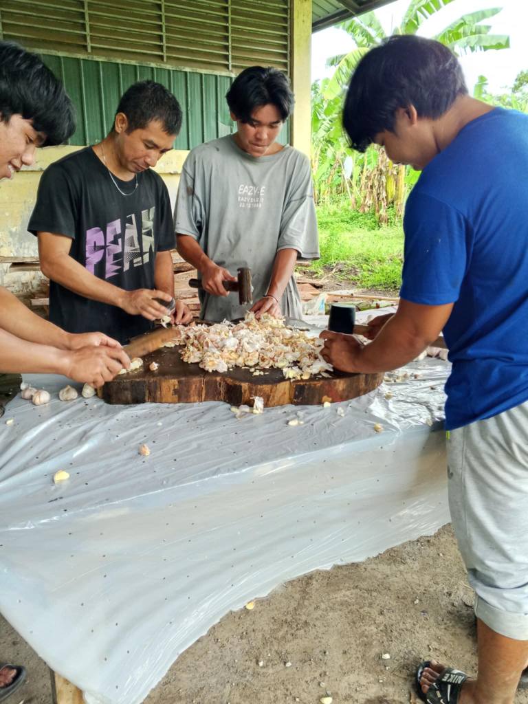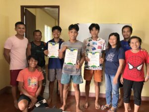 2025年6月末から研修に参加していたイマン、ランス、パトンに加えて、8月からは「現在は採石場で仕事をしているが、循環型の農業を学んで自分の村で農業を始めたい」と強い意志を持ってKF-RCの門を叩いたマークが加わり、4名となった11期生。7カ月〜9カ月間にわたる住み込みでの研修では、農薬や化学肥料を使用しない野菜・果物の栽培や養豚など、循環型農業の知識や技術について学んだだけではなく、料理や洗濯など、これまで家族に任せきりだった日々の仕事も自分たちで担うことで、自立した一人の人間として生きていくことそのものを学んだようです。