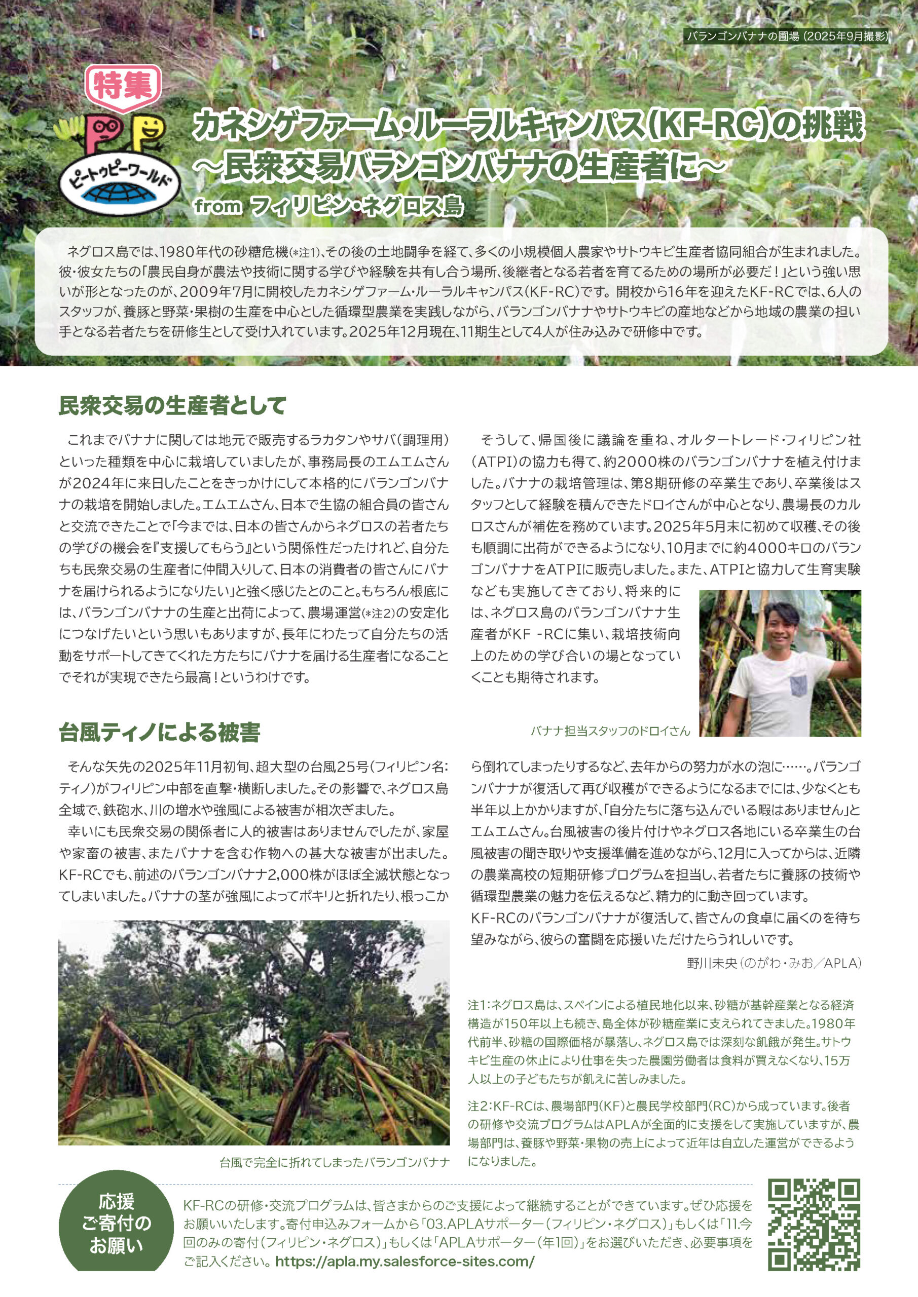 【P to P特集】カネシゲファーム・ルーラルキャンパス(KF-RC)の挑戦 ~民衆交易バランゴンバナナの生産者に~
